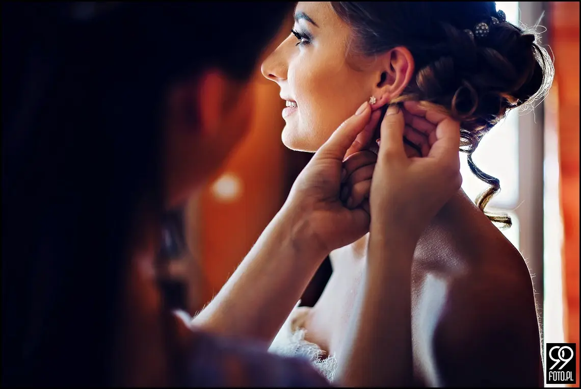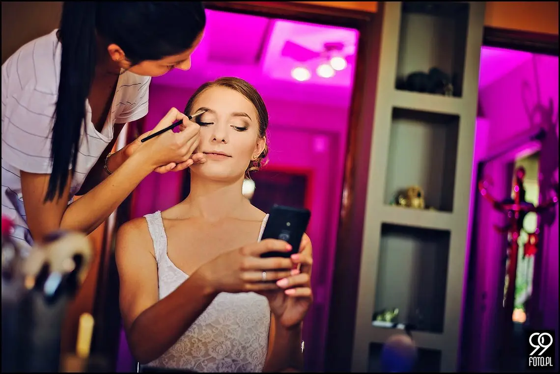 W historii facebookowych zdjęć można odnaleźć studniówkę, na której Paulina i Darek tańczą maturalnego poloneza w jednej parze. Poznali się jeszcze wcześniej, a ich miłość przetrwała czasy studenckie by w ubiegłą sobotę doprowadzić ich do ołtarza, gdzie powiedzieli sobie sakramentalne TAK. Przygotowania rozpoczęliśmy w salonie fryzjerskim w Liszkach o godzinie 9 rano. Następnie udaliśmy się do domu Pauliny w Czułowie, gdzie wizażystka wykonała bardzo profesjonalny makijaż. Ania towarzyszyła Paulinie podczas ubierania sukni ślubnej i wspierała ją pięknym uśmiechem w każdej sytuacji. Chwilę później byłem już w Minkowie w domu Darka. W drodze powrotnej na naszej drodze napotkaliśmy bramę. Panowie bramowicze tanio skóry nie sprzedali.