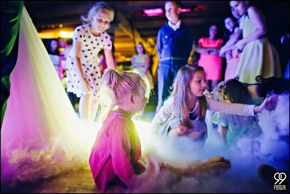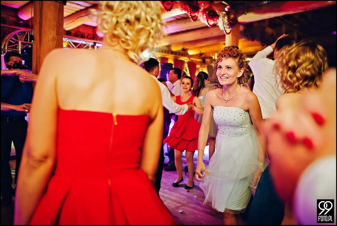 Po błogosławieństwie udaliśmy się do Kościoła p.w. św. Mikołaja w Liszkach. Bardzo ładny, odnowiony kościół i piękna ceremonia. Po mszy świętej zrobiliśmy zdjęcie grupowe i Para Młoda zaprosiła gości do składania życzeń. Przy tej okacji sfotografowałem tony uśmiechów. Po życzeniach udaliśmy do Restauracji Skansen Smaków w Kryspinowie, gdzie odbyło się wesele. Państwo młodzi zatańczyli w chmurach i otworzyli parkiet pierwszym tańcem. Chmury na salę sprowadzili podobnie jak całą muzę tej imprezy Jola i Leszek z DJ Lecho – Dekoracja światłem, których serdecznie pozdrawiam. Szaleństwom na parkiecie nie było końca i zabawa trwała do białego rana. Paulino i Darku, dziękuję Wam, że mogłem być z Wami tego dnia i do zobaczenia na plenerze. Miłego oglądania, a po więcej zdjęć tradycyjnie już zapraszam gości weselnych do strefy klienta z hasłem z mojej wizytówki.