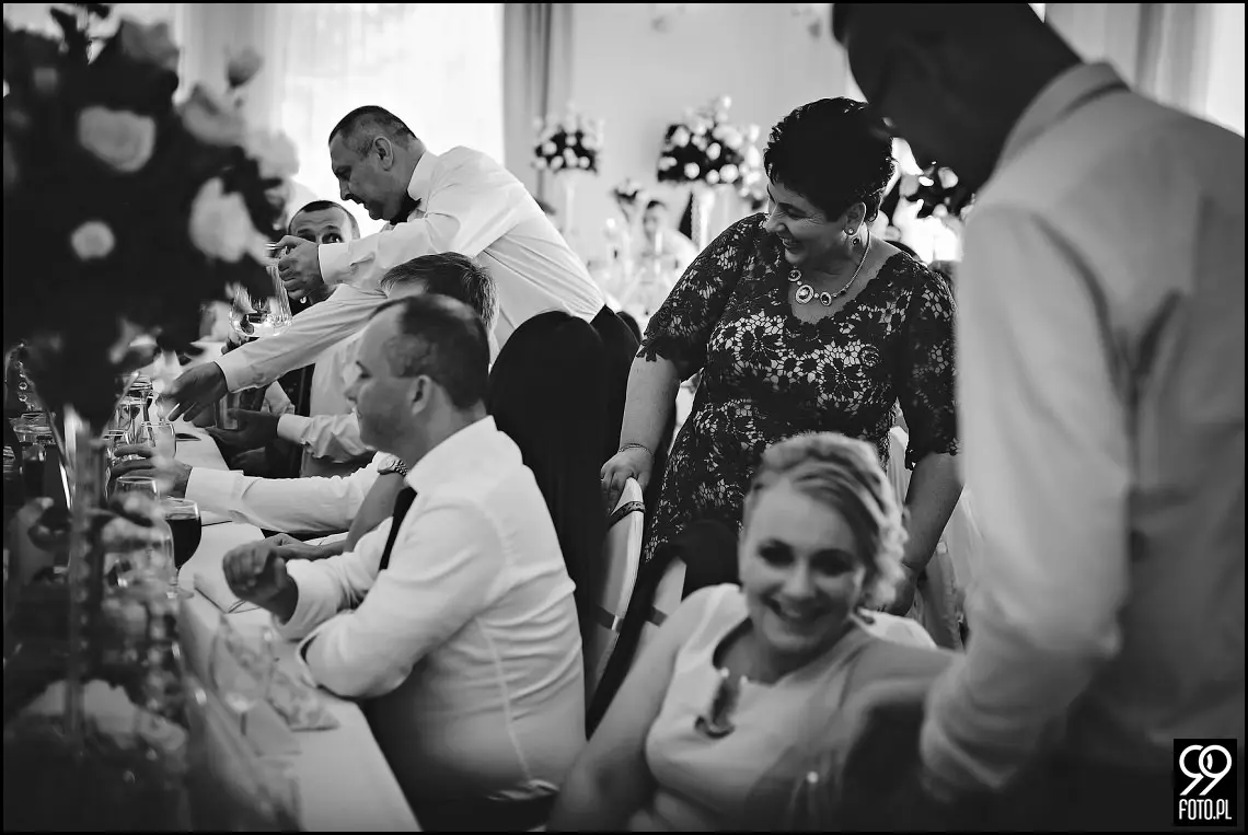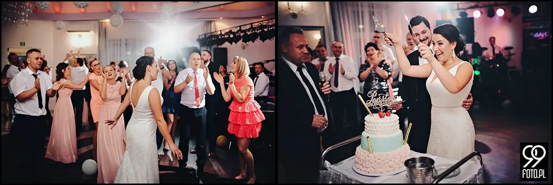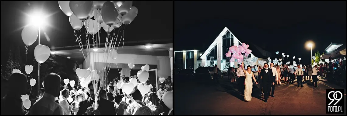 Księża przywitali Parę Młodą w zachrystii, dopełniono formalności i ceremonia zaślubin wystartowała. Po sakramentanym TAK nadeszła pora na klasyczne wyjście z kościoła przez szpaler starannie ułożony przez druhny i drużbów ślubnych. Następnie czerwony Mustang przewiózł Magdę i Piotra do Hotel Junior w Krakowie, rodzice przywitali Parę Młodą chlebem i solą, brat Piotrka mocno powalczył z petardą i rozpoczęły się życzenia. Były gorące, jak atmosfera całego ślubu i bez nawet 10 sekund nieprzerwanych salwą śmiechu. Pierwszy taniec otworzył parkiet, na którym swoje instrumenty rozłożył Zespół muzyczny Prima Band. Minutkę przed burzą, której jednak nie było, wyskoczyliśmy na zdjęcia grupowe i plenerowe. Dalej były już same atrakcje, tort weselny, zabawy oczepinowe i wiśnia na torcie, dmuchane helem i podświetlane ledami baloniki, które poleciały wysoko, wysoko, bardzo wysoko. Były osoby, który widziały, że ułożyły się w powietrzu w krzałt serca... no cóż mój aparat nie był, aż tak spostrzegawczy. Nie mogę zapomnieć dodać, że każdą minutę tych niezwykłych wydarzeń filmował mój dobry kolega Krzysiek z Pracowni Filmu Ślubnego CAMDESIGN, którego bardzo wszystkim przyszłym param młodym polecam. Magdo i Piotrze, dziękuję, że mogłem być tam z Wami i zapraszam na zdjęcia. Tym razem działo się tak dużo, że blisko 600 zdjęć znajdziecie w strefie klienta wpisując hasło z mojej wizytówki. Miłego oglądania.
