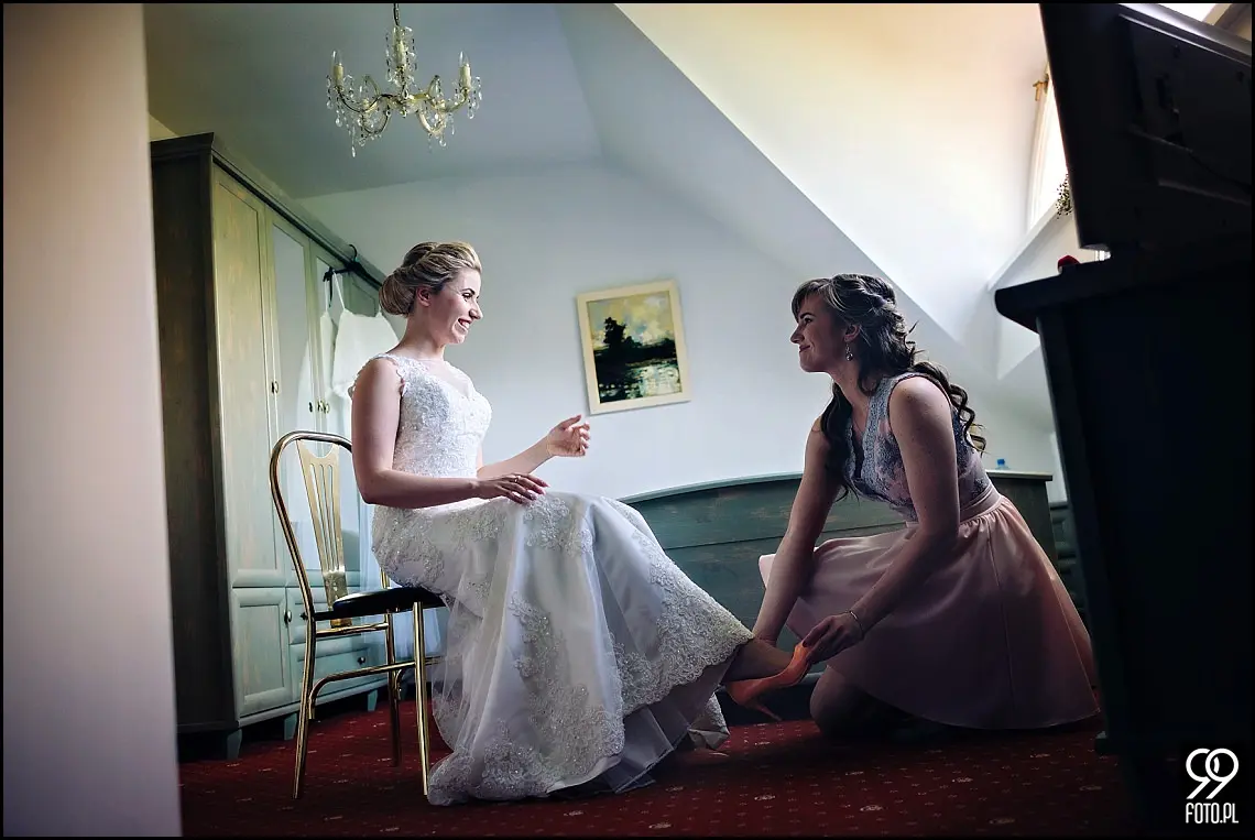 Ostatnio mam coraz większe szczęście do par, którym towarzyszę w ich najważniejszym dniu. Ola i Przemek to absolutnie wyjątkowi ludzie. Spotkaliśmy się już wcześniej na sesji narzeczeńskiej i już wtedy wiedziałem, że będzie fajny ślub i z pewnością mega zdjęcia. Poszukując sali weselnej w Tarnowie, Ola i Przemek szukali miejsca, które dzięki klasycznemu i barokowemu wystrojowi pozwoli przenieść gości weselnych w dawne czasy i stworzy staropolską atmosferę. Pozytywne opinie, których pełno można znaleźć w internecie pozwoliły im dokonać właściwego wyboru Dwór Bistuszowa okazał się być wymarzonym miejscem na ich ślub. Siedemnastowieczny dwór, przebudowany i odrestaurowany sto lat później, którego mocną stroną jest park dworski, przepiękna aleja lipowa to świetne miejsce na ślub plenerowy. Reportaż ślubny rozpoczęliśmy właśnie w tym tego dnia oddanym do dyspozycji Oli miejscu.